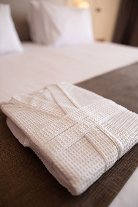 The ideal room for couples or single travelers with amazing views from sunrise to sunset. Spacious and comfortable, furnished with two comfortable lounge chairs, a dressing table with side chair, a luggage rack, a wardrobe and a spacious bathroom with bathtub. All of our sea view rooms have a balcony with 2 chairs and a table overlooking the beautiful Mediterranean Sea.